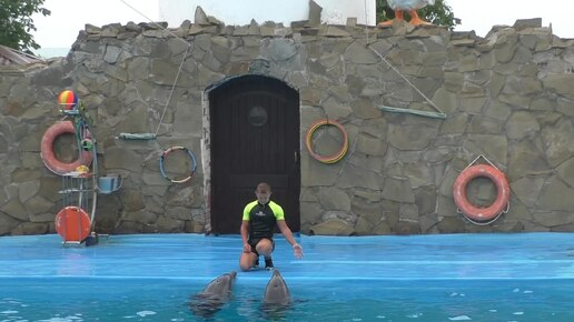 В восторге от дельфинов, совершающих головокружительные прыжки. Дельфины и их тренер - единое целое