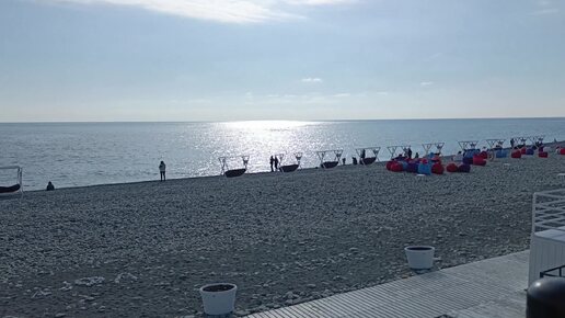 ФТ Сириус (Сочи), 27.02.2025. Зимний пляж Сочи-Парк отеля в Имеретинке. Ненастье отступило, но всё ещё очень холодно.