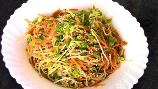 Полезный и вкусный салат из проростков маша (золотистой фасоли) по-корейски.