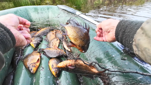 ПРОВЕРКА СЕТЕЙ. НАЛОВИЛ ВЕДРО РЫБЫ ЗА ОДНУ ПРОВЕРКУ. Золотой карась на сети.