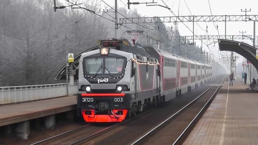 Супер-приветливая бригада на электровозе ЭП20-003 с двухэтажным поездом и встречная ЭС1-022 "Ласточка".
