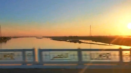 Египет. Поездка на автобусе через реку Нил на закате. Январь.