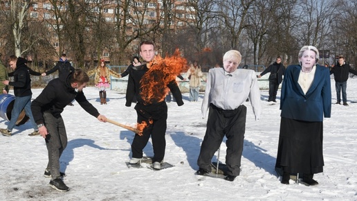 В честь Масленицы сожгли чучела Джонсона, Фон дер Ляйен и Макрона