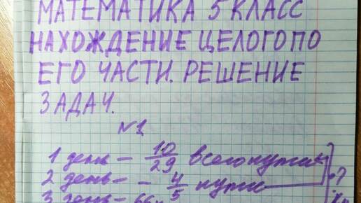 Математика 5 класс. Нахождение целого по его части. Решение задач.