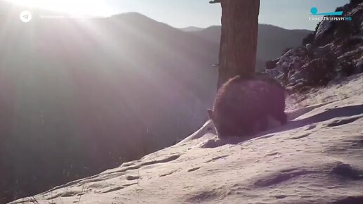 Кто-то ищет вкусняшки под снегом большим пятачком