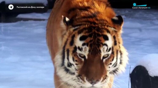 Тигра очень ждет приближения весны. А пока наслаждается снегом, подминая его мощными лапами