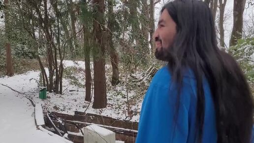 Снегопад в Сочи. Чилиец в восторге. Идем через лес к морю