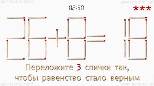 Задача со спичками 422 (4). Переложите 3 спички так, чтобы равенство стало верным (26+8=18)