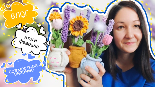 Итоги февраля, вязальный влог, цветы в горшочке - приглашаю на совместное вязание #вязовлог #вязание #амигуруми