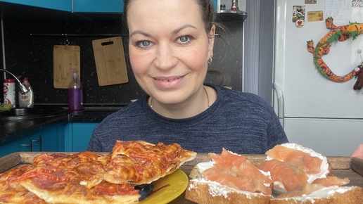 МУКБАНГ ЗАВТРАК ДОМАШНЯЯ ПИЦЦА,БУТЕРБРОДЫ С РЫБКОЙ/MUKBANG ЕДА ОБЖОР