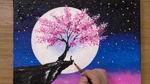 Вишневый цвет под луной _ Техника рисования акрилом
