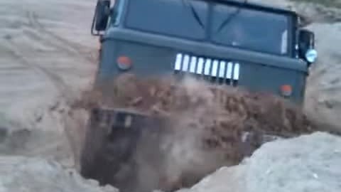 Грузовик газ 66 и песчаная кучка или горка