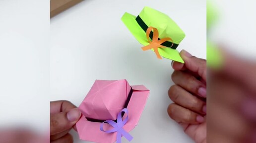 Мини-шляпа из бумаги своими руками / Как сделать шляпу из бумаги / Оригами шляпа / Легкие поделки