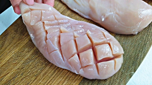 Просто делаю надрезы на куриной грудке и ставлю в духовку. Куриная грудка с картофелем.