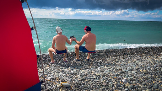 Прохожие в шубах, мы в плавках! Баня прямо на пляже в Сочи!