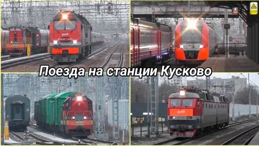 Поезда на станции Кусково. 2ТЭ25Км резервом, выезжающий из тупика ЧС7 и др.