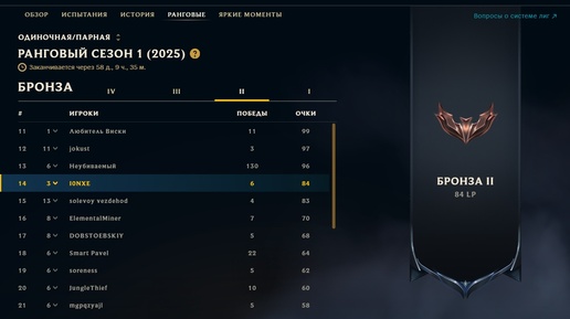 Лига легенд Ранговые игры Бронза 2 84 LP