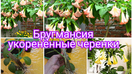 БРУГМАНСИЯ . ЧЕРЕНКИ БРУГМАНСИИ УКОРЕНИЛИСЬ. ПЕРЕСАДКА В ГОРШКИ.