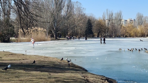 Без ЧП на льду не обошлось. Гагаринский парк в Симферополе #Крым