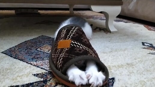 Кошка Мия не даёт скучать. Играет с тапочком🤣
