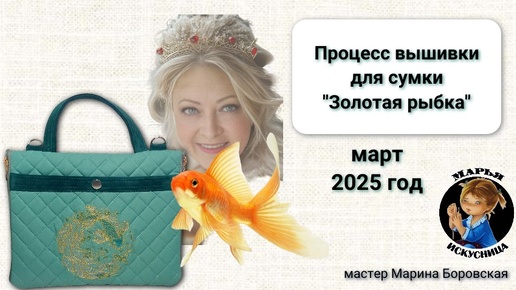 Вышивка для сумки ручной работы "Золотая рыбка".