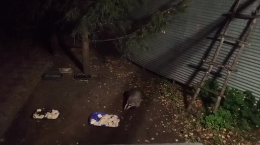 Рубрика ПРОШЛЫХ ЛЕТ ДИКОГО ЗООПАРКА ЗА ОКНОМ.Ужин барсучат продолжается.