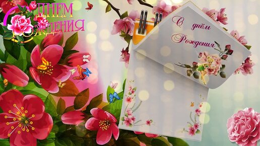 Женский фото заменяемый проект открытка с цветами. С Днем рождения.