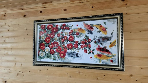 Оформленная работа D312 Flowers and fishes Цветы и карпы Кои