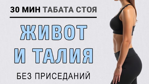 30 мин ЖИВОТ + ТАЛИЯ - Табата для новичков🔥Полностью стоя без приседаний и без прыжков