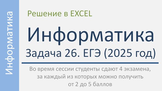 Информатика. ЕГЭ - 2025 год. Задача 26. Решение с помощью EXCEL. Во время сессии студенты сдают 4 экзамена