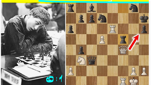 Да, гений Бобби Фишер в 1959 еще не окреп, но и Василий Смыслов за черных был крайне хорош в мега-сицилианской партии (Югославия, 0-1)