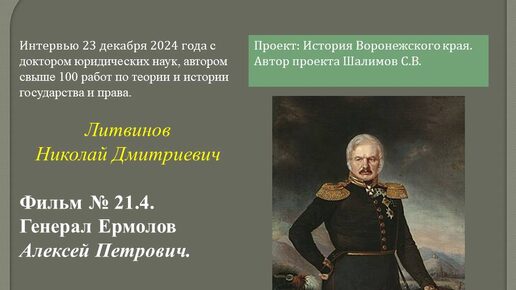 2024.12.23. Фильм № 21.4. Генерал Ермолов Алексей Петрович. Профессор Литвинов Н.Д.