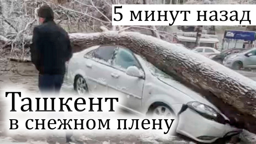 Ташкент после обильного снегопада. Деревья повалены машины разбиты
