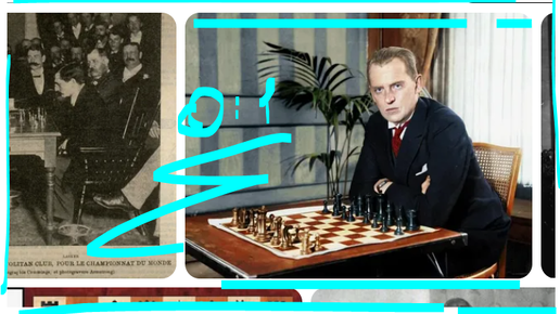 Совместная битва: Алехин черными сражается против Кэждэна и Филипса в США, 1933. Испанская партия, современная защита Стейница, 0-1