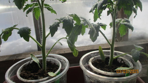 Первая прогулка в 2025 году! Сегодня, 3 марта, я первый раз вынесла на солнце свою рассаду томатов.
