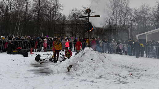 Масленица в Дзержинске. Сжигание чучела. Поглазеть пришел весь город.