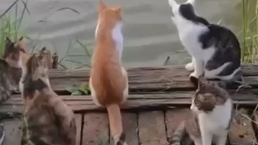 коты на рыбалке!! какие они классные, как внимательно следят когда клюнет))