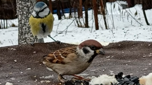 Воробьи и Синицы прилетели на кормушку (08.01.2025 года)