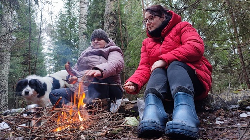 Пикник в бесснежном лесу в феврале. Ходили смотреть на зимний-незимний лес