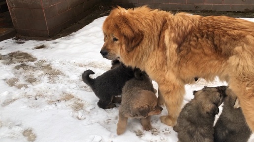 Далее: Материнскую грудь встретили на прогулке. Она согрела и накормила малыша тибетского мастифа.