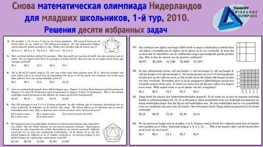 Снова математическая олимпиада Нидерландов для младших школьников, 1-й тур, 2010. Решения избранных задач.