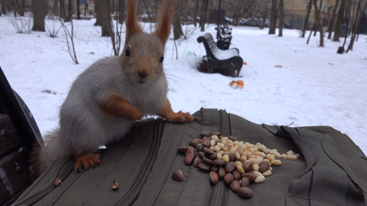 Покормил совершенно дикую белку