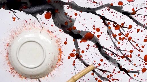 Простое рисование вишневого цвета _ Техника разбрызгивания акварелью
