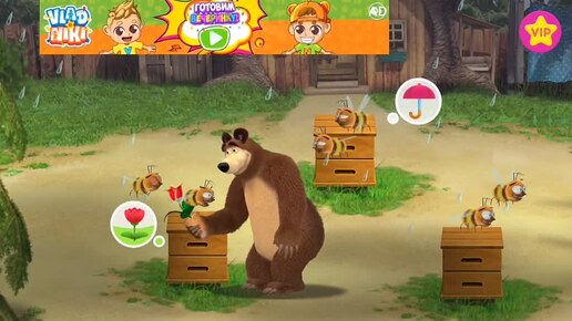 Мультфильм Игра для малышей Маша и Медведь 🌲🎁🐈 на ферме