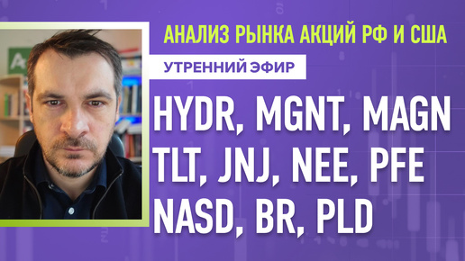 Анализ рынка акций РФ и США/ HYDR, MGNT, MAGN, TLT, JNJ, NEE, PFE/ NASD, BR, PLD