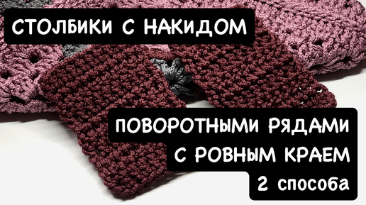 Вяжем крючком столбики с накидом поворотными рядами с ровным краем. Два способа вязания