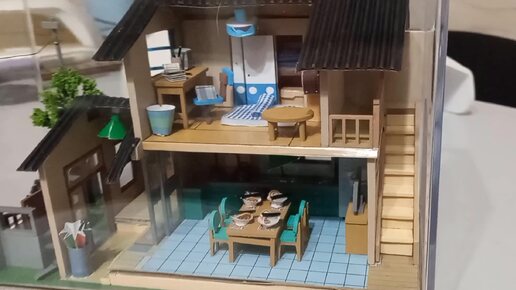 Румбокс. Внучка сделала вот такую миниатюрную модель домика. Даже свет включается!