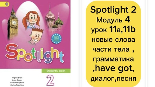 Spotlight 2.Module 4.Урок 11а,11b.Новые слова-части тела.Грамматика have got.Диалог и песни,чтение и перевод