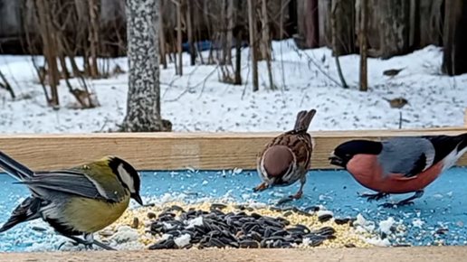 Прилетели Воробьи, Большие Синицы, Голуби, Лазоревки, Снегири, Зеленушки и Сойки (09.01.2025 года)