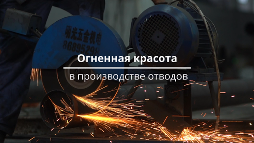 Красивое видео из цеха. Сотрудник с помощью отрезного круга обрезает трубу нужного размера. Из этой трубы будет изготовлен бесшовный отвод.
